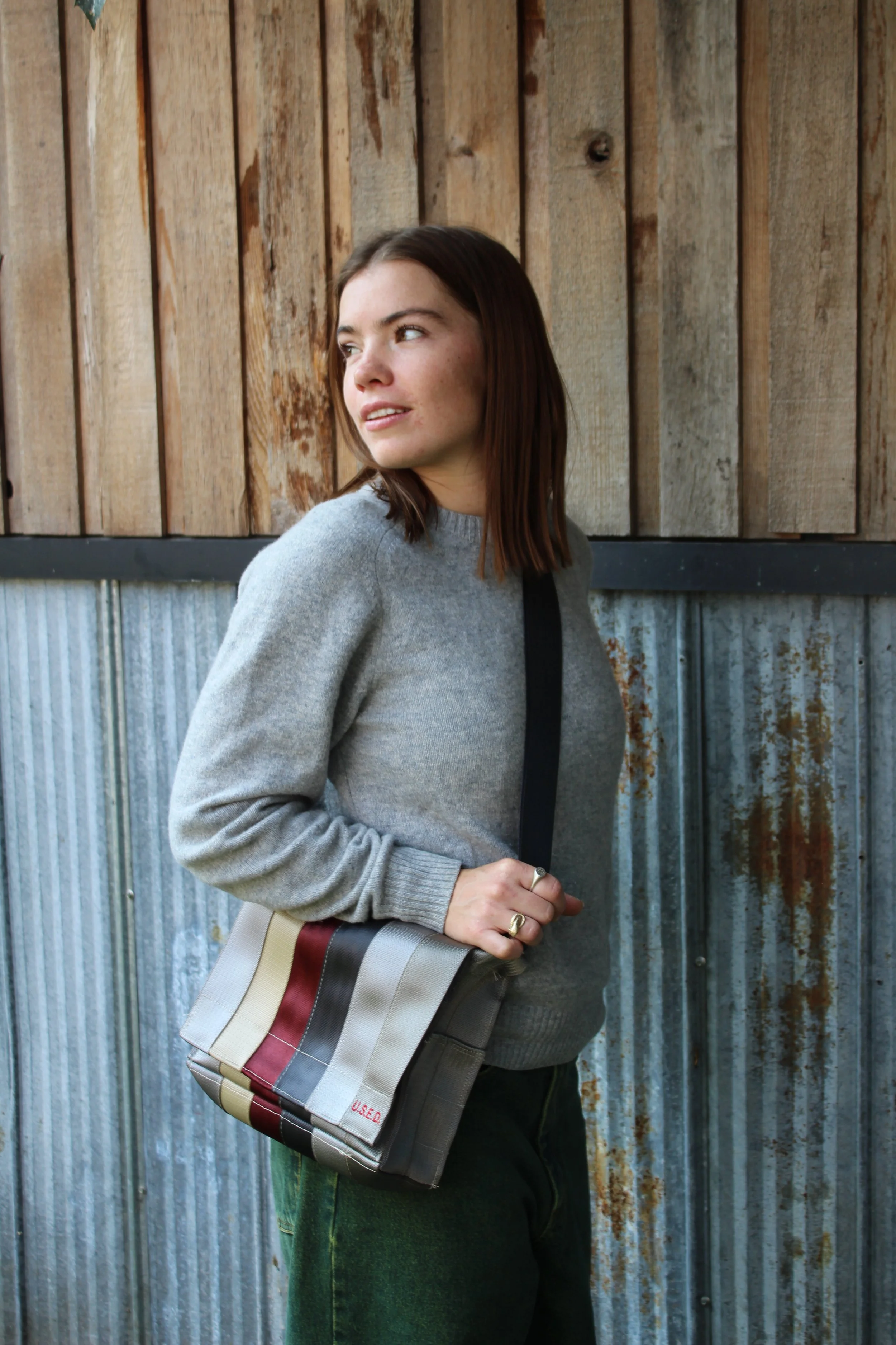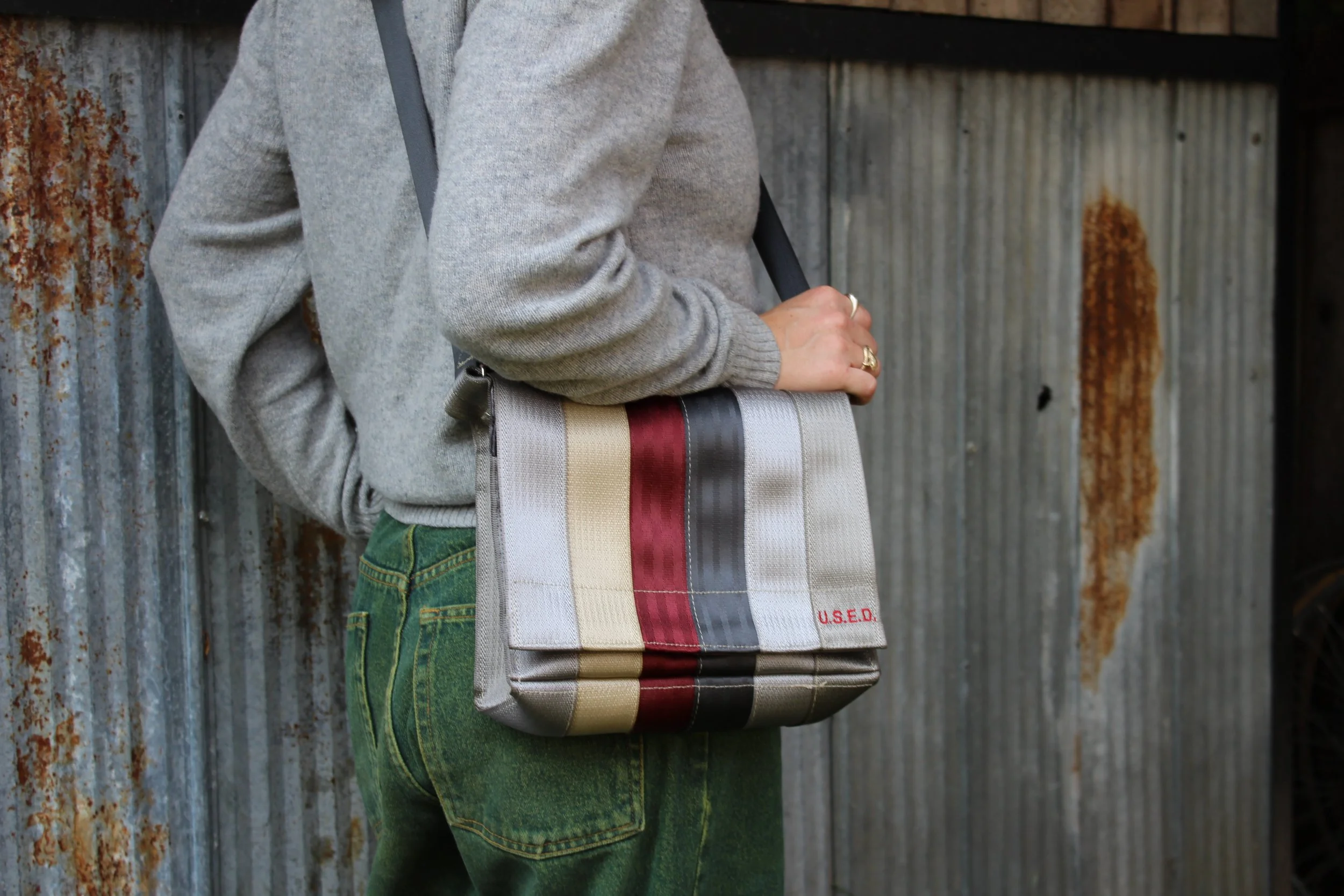 Each bag is one-of-a-kind, with unique colour variations. The model photos show size and fit only.